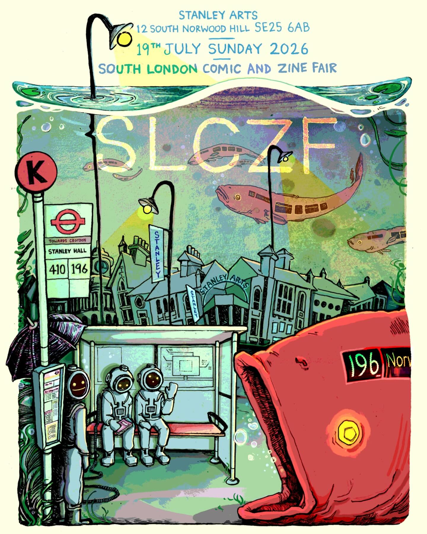 Stanley Arts 12 South Norwood Hill, LondonIt’s Back! South London Comic and Zine Fair 19th July 2026 Stanley Arts Applications open from April Artwork by the Brilliant! @ambush_mo_morrell